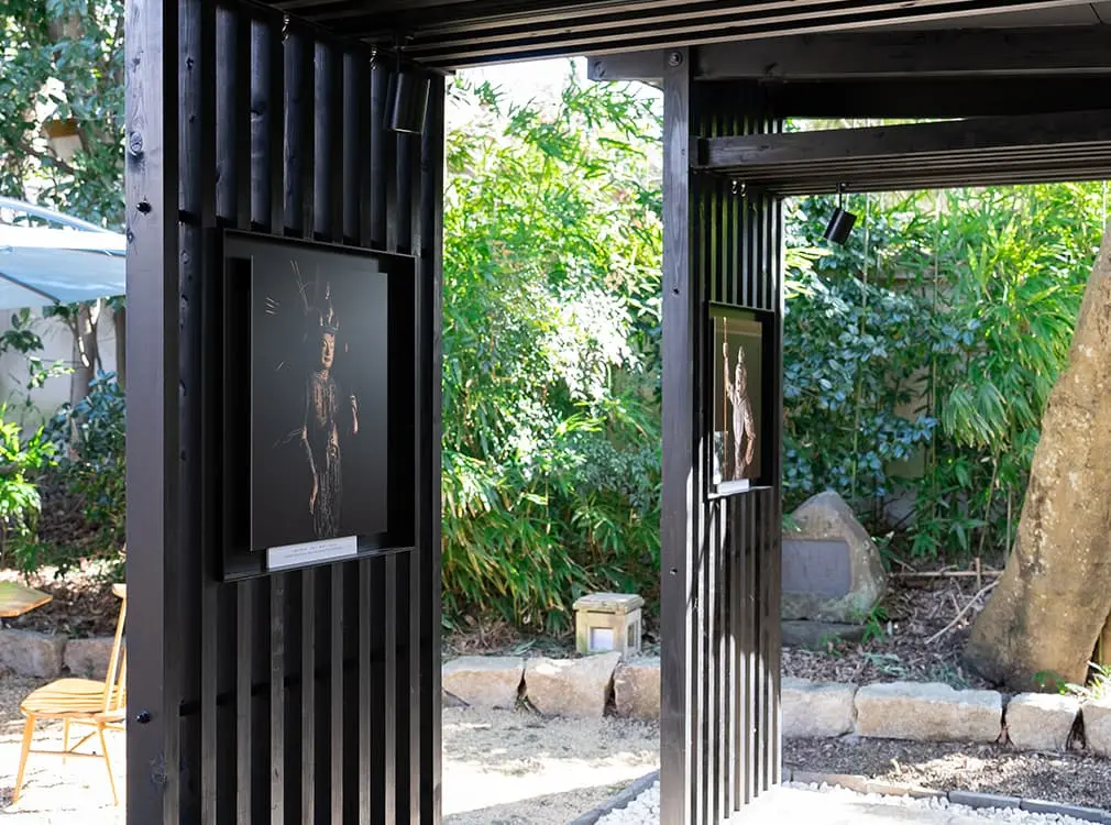 森に囲まれた露地庭園にある屋外展示場で